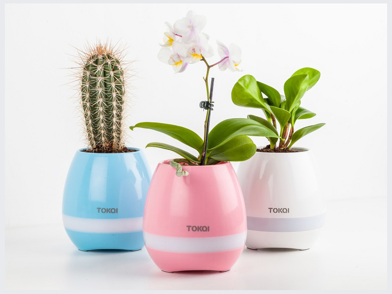 اسپیکر و گلدان موزیکالی Tokqi است که ترکیبی از دستگاههای اسپیکر، گلدان موزیکال و شب خواب است.
